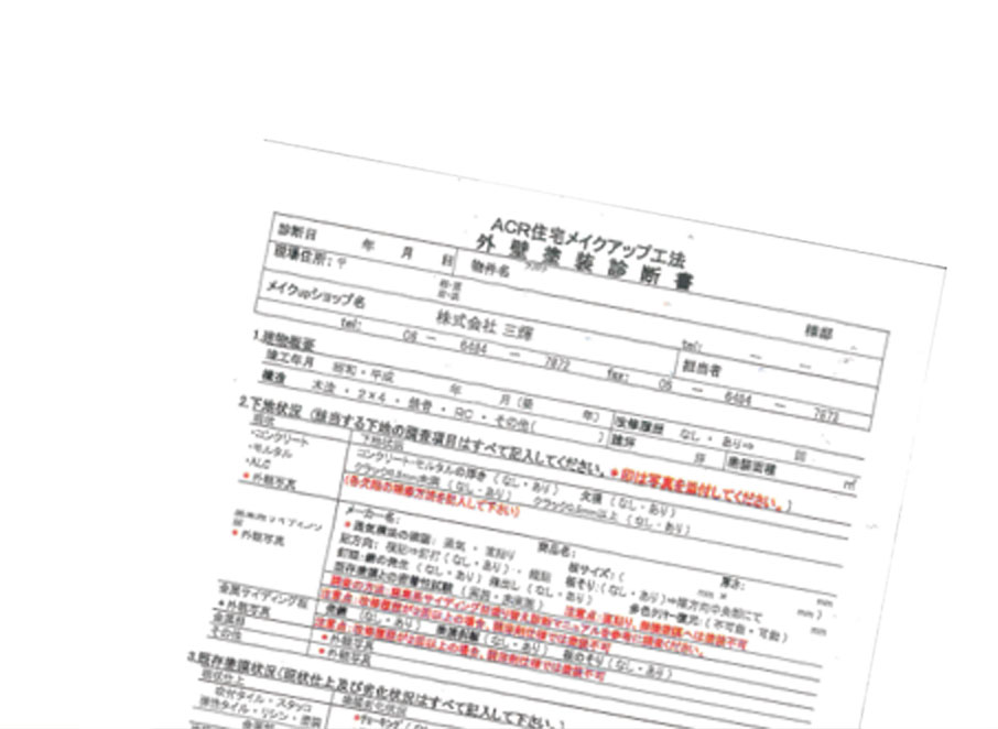 診断書、管理シートの項目をすべてクリアすることにより、AGC、AGCコーテック、三輝、 3社合同の15年保証が実現しています。