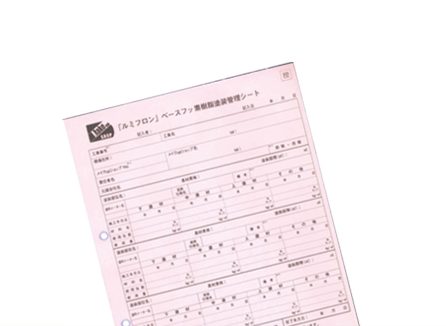 診断書、管理シートとロットナンバーは紐づけされ、 塗布量、工事全体をメーカーで管理しています。