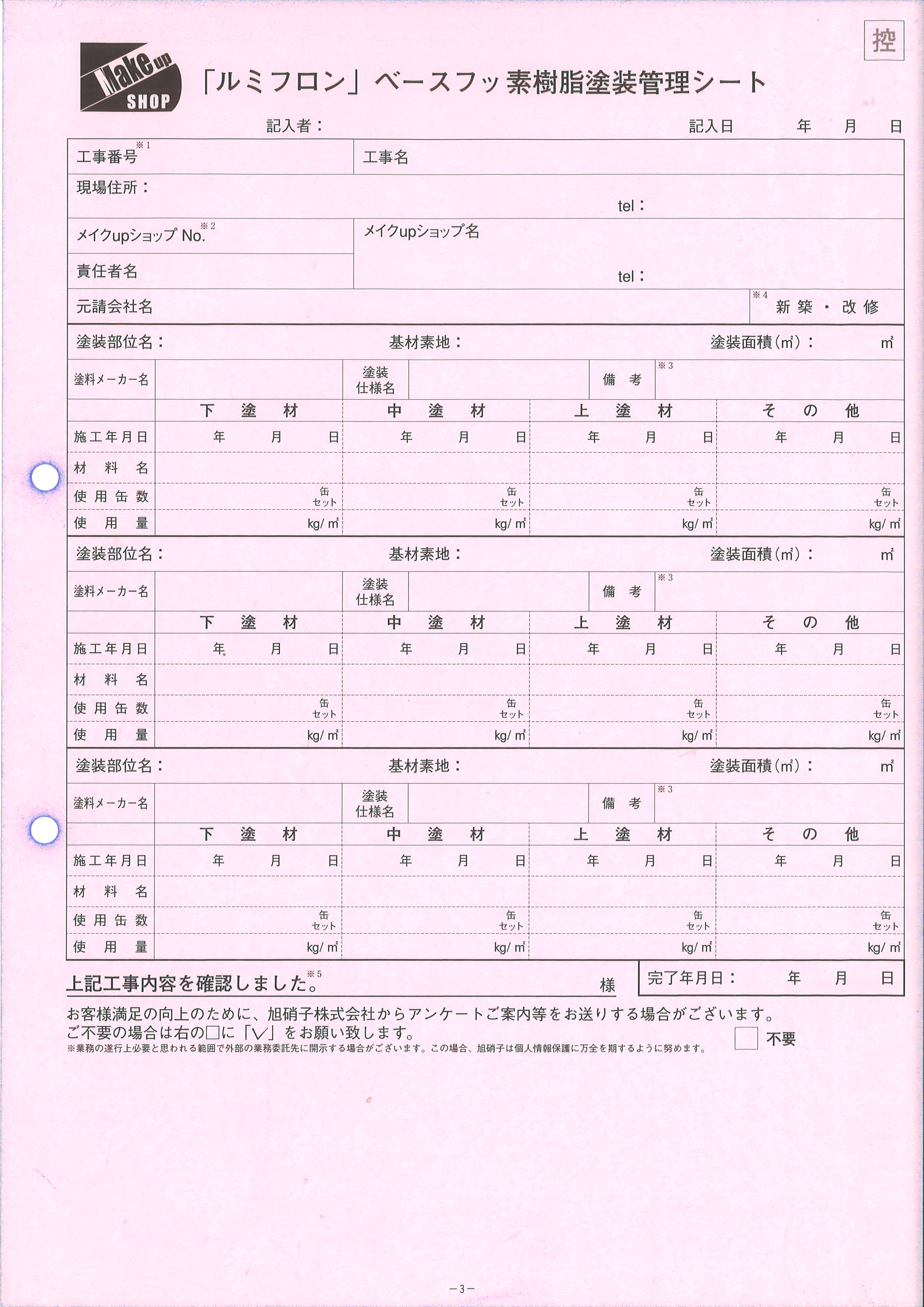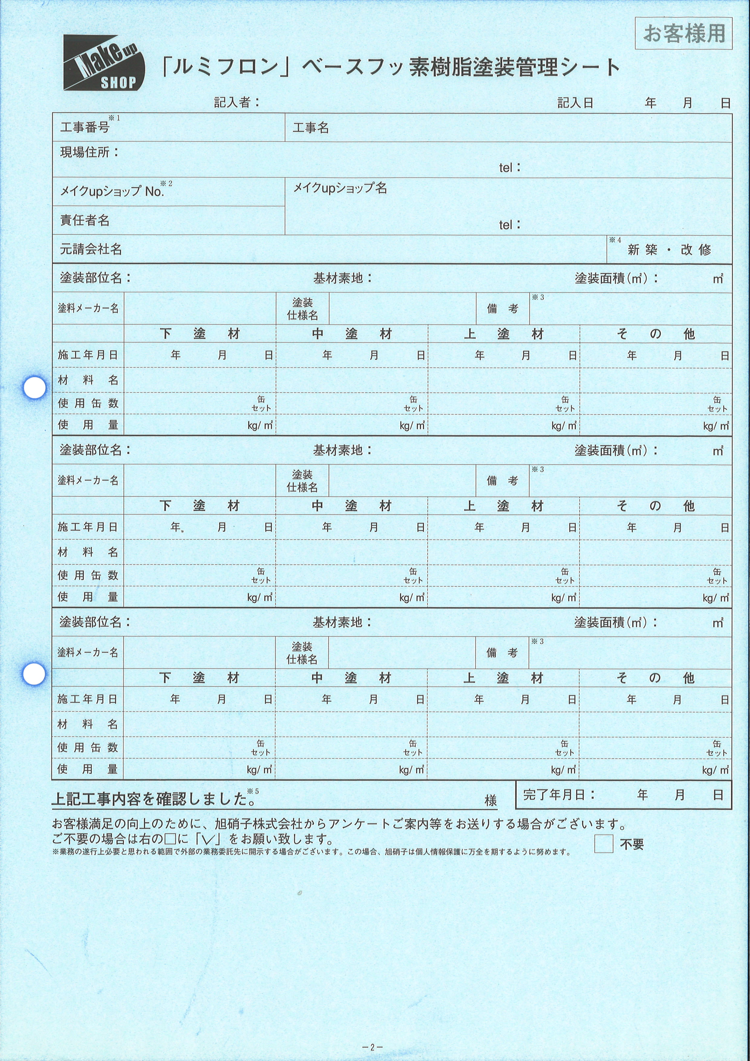 塗装工程表・塗装管理シート(スケジュール表、塗料の使用量などが分かるシート)を提示させていただきます。